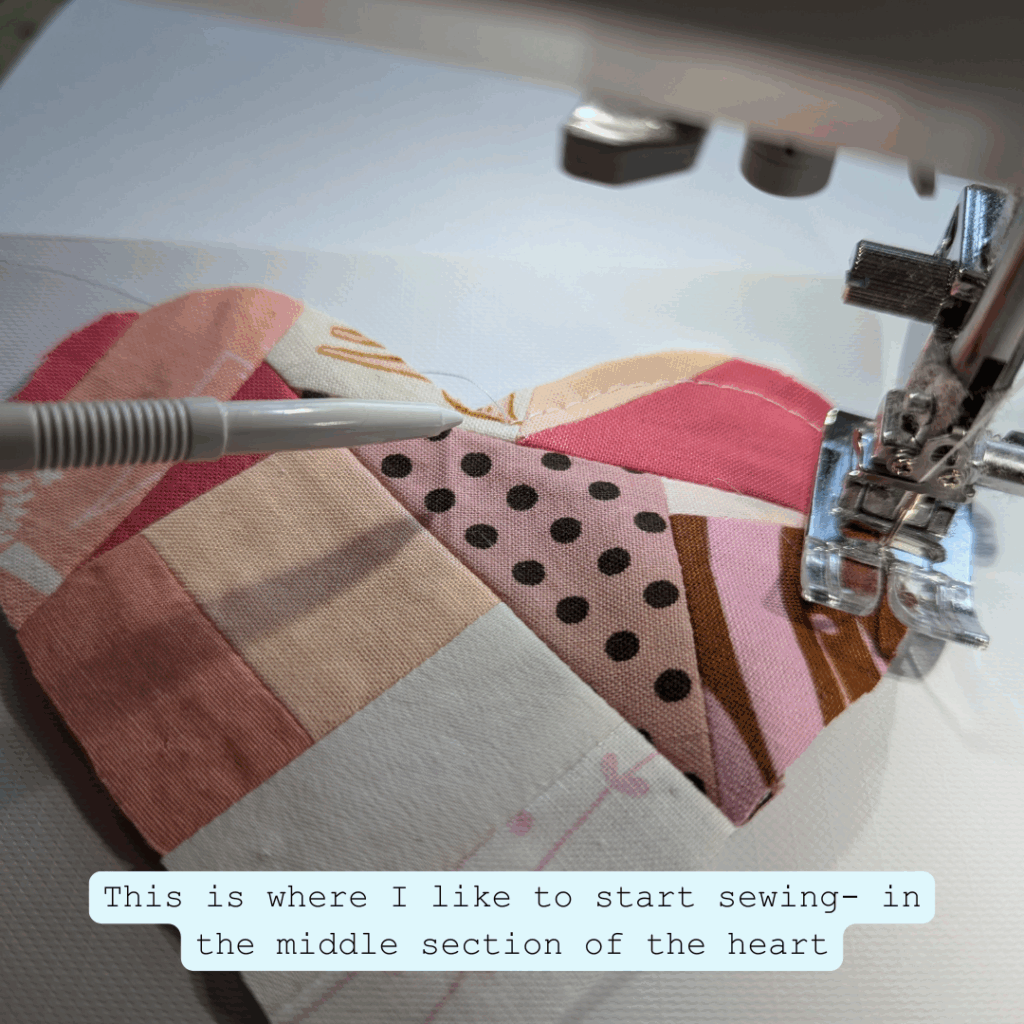 I improv piece my fabric hearts and let the scraps guide the design. If improv feels intimidating, don’t overthink it—just start pairing fabrics and see what looks good together.